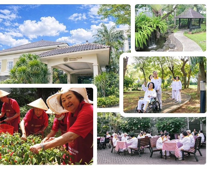 Kami juga menawarkan berbagai fasilitas luar ruangan yang dirancang khusus untuk warga senior.
